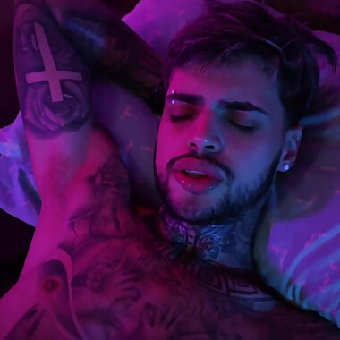 "Hot Tattooed Twink Jerking His Big Uncut Cock with Oil and Shooting His Cum"