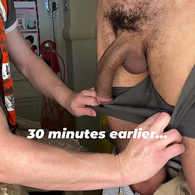 "XL Huge monster cock fucks his cum inside ginger tradesman's ass hole! Creampie!!"