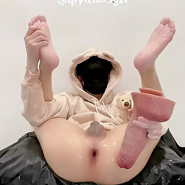 "Cute Asian boy moans softly on the beautiful balcony, masturbates, ejaculates and eats juice"