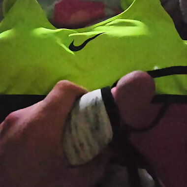 "Using my step sis bra to help me cum in her green nike pro sports bra"
