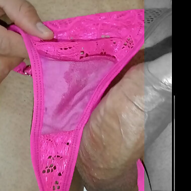 "Desperate pissing in new pink lace underwear, hot submissive, cumshot and my uncontrollable, close-up"