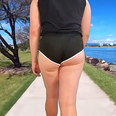 "Bubble butt crossdresser walk in tight hot pants"