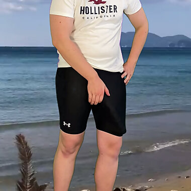 "Cum handsfree in lycra sport-shorts"