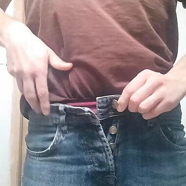 "Massive cock cum in tight pants"